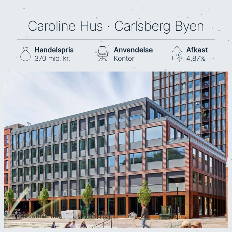 De traditionelle kontorinvestorer genfandt for alvor appetitten for kontorsegmentet mod slutningen af 2025, hvor flere markante transaktioner med kontorejendomme fandt sted på det danske marked. Denne positive udvikling og stærke efterspørgsel er tilsyneladende fortsat med uformindsket styrke ind i 2026. En af årets hidtil største og mest opsigtsvækkende handler omfatter Wihlborgs' strategiske køb af Caroline Hus i Carlsberg Byen til en samlet handelssum på 370 mio. kr.